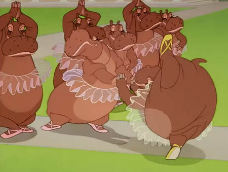 Противоположностью выступает гротескный архетип, который через преувеличение и пародию размышляет об искусственности балетных условностей. Яркий пример — танцующие бегемоты и страусы в «Фантазии», чьи массивные тела контрастируют с утонченными пачками и пафосными движениями.