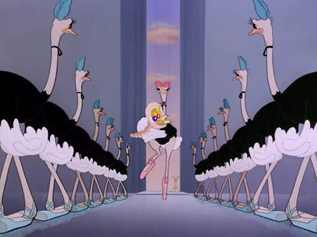 Изначальный образ балерины как сильфиды, бесплотного духа, нашел свое первое воплощение в ранней анимации Диснея, например, в сценах из «Фантазии». Но уже здесь, в «Танце часов», мы видим не просто грацию, а ее гротескное преувеличение. Танцующие страусы и бегемоты в пачках — это не ошибка восприятия, а сознательная деконструкция идеала через пародию. Анимация обнажает абсурд, скрывающийся за маниакальным стремлением к легкости и совершенству, демонстрируя, как возвышенное может моментально обернуться комическим. Этот прием работает на контрасте: неестественная для массивного тела грация бегемота подчеркивает условность и, в некотором роде, насильственность самого балетного канона.