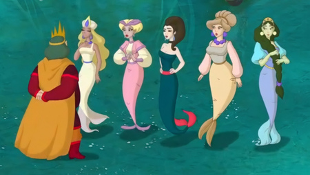 В нескольких эпизодах встречаются три русалки. Тот, кто выпьет из лагуны где они живут — подчиняется им. Здесь они являются отрицательными персонажами, как и в оригинальном мультфильме они хитрые и самовлюбленные, но в то же время немного отличаются по характеру друг от друга. Внешний вид стал ярче и вариативнее, добавилось много украшений, у каждой русалки разный цвет кожи.