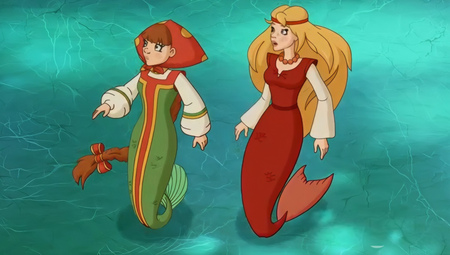 Аленушка, Любава и другие киевлянки из мультфильма «Три богатыря и морской царь» в образе русалок