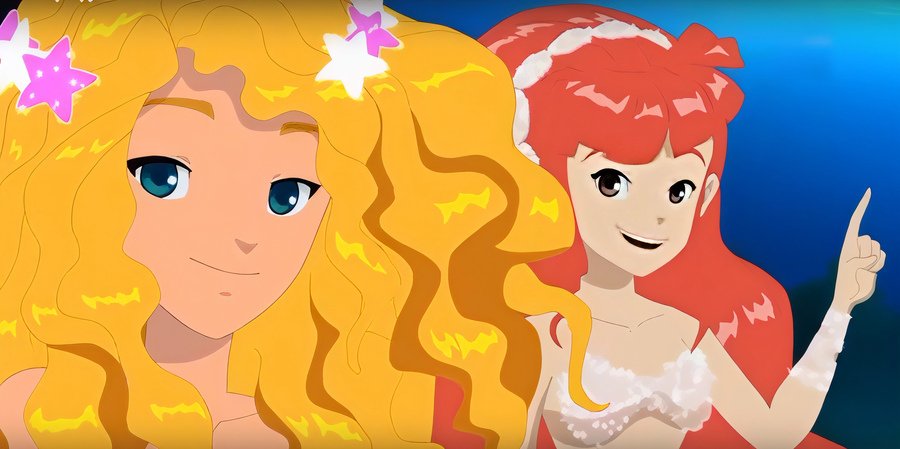 Финья и Флорин из мультфильма «Финья, Флорин и русалки» после превращения в русалок