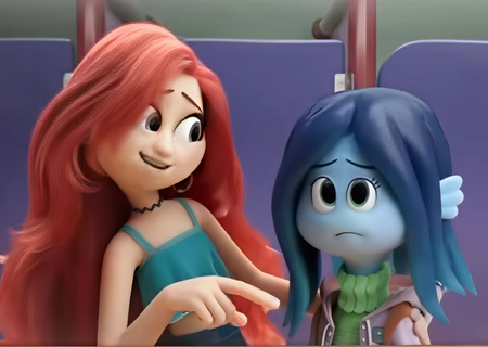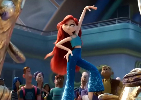 Руби Гильман: Приключения кракена-подростка\Ruby Gillman, Teenage Kraken (2023) — полнометражный мульфильм студии DreamWorks. Страна производства — США. Антагонистом является русалка Челси де ла мар, внешний образ которой является явной пародией на диснеевскую Ариэль — у неё узнаваемые ярко-рыжие волосы и одежда в цвет хвоста популярной героини. В мире где происходит действие персонажи меняются привычными позициями: Кракены выступают за добро, защищая океан от коварных русалок. Руби Гильман — она же гигантский кракен скрывающийся за человеческим обликом, приходит учиться в новую школу, где и встречает местную версию Ариэль, которая также маскирует свою настоящую сущность. В образе русалки у Челси голубой хвост с острыми плавниками на конце, которые намекают на её отрицательную роль.