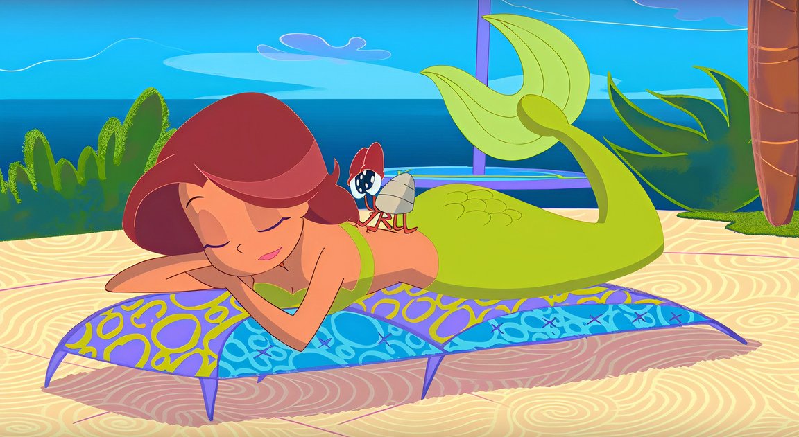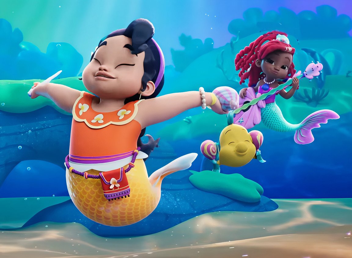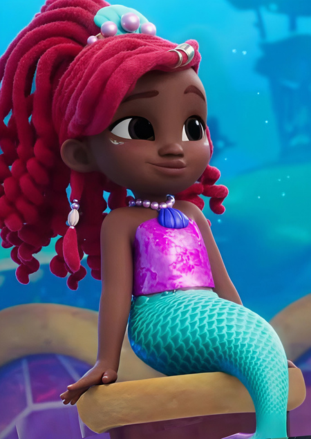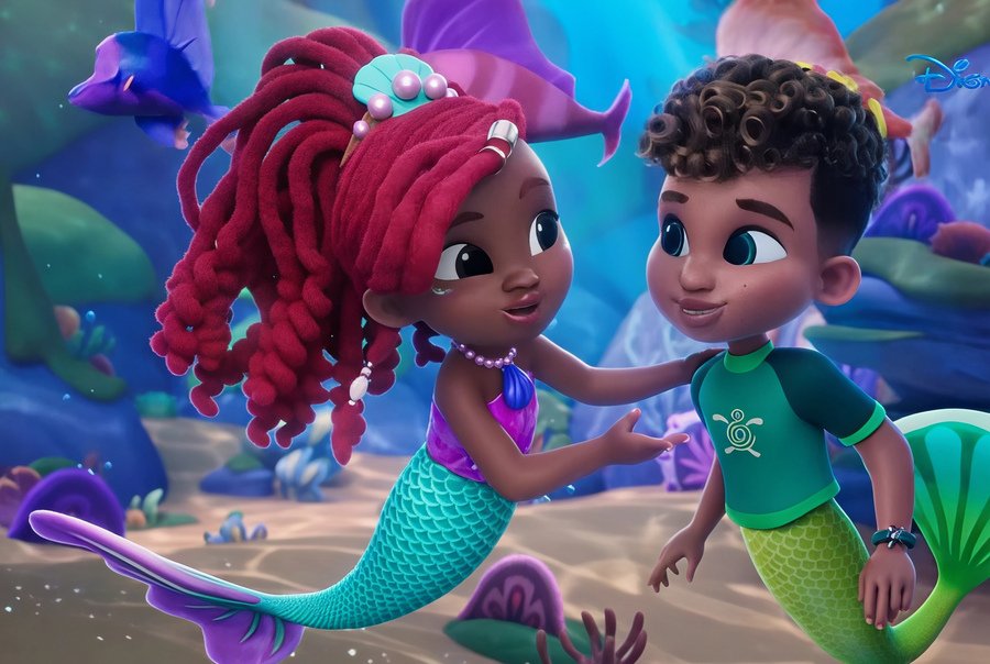 Ариэль: Русалочка\Disney Junior Ariel animated series (2024) Страна произвоста — США Сериал для дошкольников о приключениях восьмилетней принцессы-русалки по имени Ариэль. Её внешность основана на русалке из лайв-экшн ремейка «Русалочки», где героиню сыграла актриса Холли Бейли. Мягкая аккуратная 3д-графика соответствует текущим стандартам анимации для дошкольных проектов. В сериале акцент сделан на позитивных и безопасных приключениях Ариэль и её друзей-русалках. Почти в каждой серии звучит хотя бы одна песня. Основные персонажи здесь в очередной раз показаны детьми, у них разное телосложение и цвет кожи. Все они носят яркие украшения. Небольшой уникальной деталью Ариэль можно назвать переливающиеся чешуйки на щеках. Также в сериале можно заметить некоторые элементы культуры Карибских островов: музыку, кухню, праздники, аксессуары. По сравнению с другими интерпретации диснеевской русалочки, здесь в подводном мире больше атрибутов, напоминающие человеческие: одежда вроде футболок, платьев, спортивная экипировка, знакомая посуда, мебель.