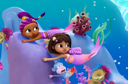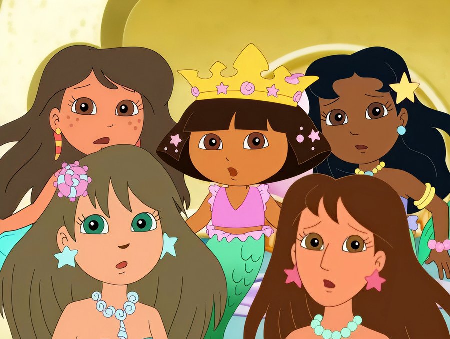 Даша и русалка Марибель с её мамой из сериала «Даша путешественница»