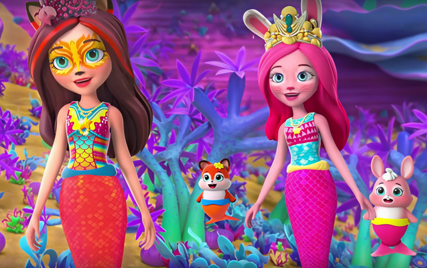 Питомцы героинь мультфильма «Энчантималс: Океанское коралевство» в образе русалок