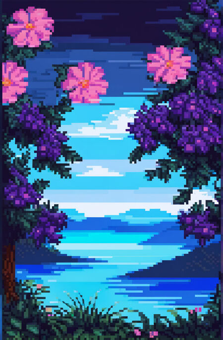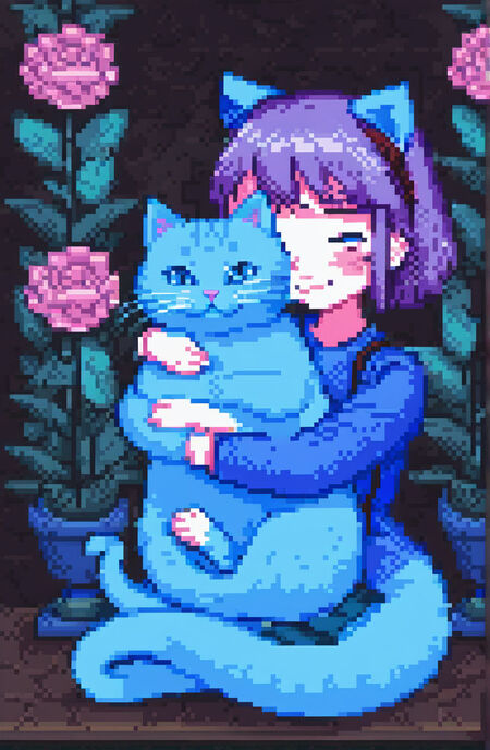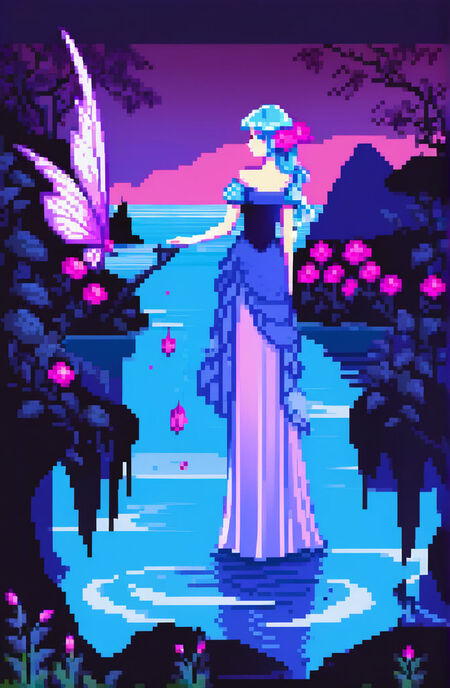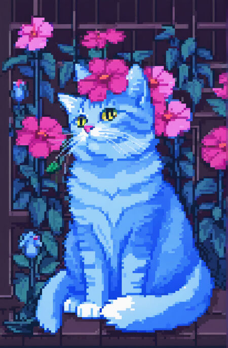 Далее я повторила ранее описанные действия, обучив модель этому стилю. С помощью смешения силы применяемой стилистики я сгенерировала новые изображения, оставив три основных цвета, и подкорректировала пикселизацию.
