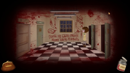 Надписи на стенах появляются после приема препарата, Скриншот из игры Fran Bow, 2015 г.
