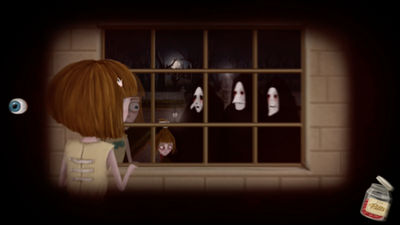 Искажение реальности девочки после принятия препарата, Скриншот из игры Fran Bow, 2015 г.