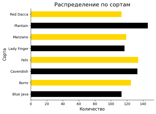 На представленном графике, иллюстрирующем распределение различных сортов бананов, можно наблюдать, что все сорта занимают примерно одинаковые позиции. Тем не менее, сорт Plantain выделяется на фоне остальных, занимая лидирующую позицию. Это может указывать на его превосходные характеристики или адаптивность в условиях.