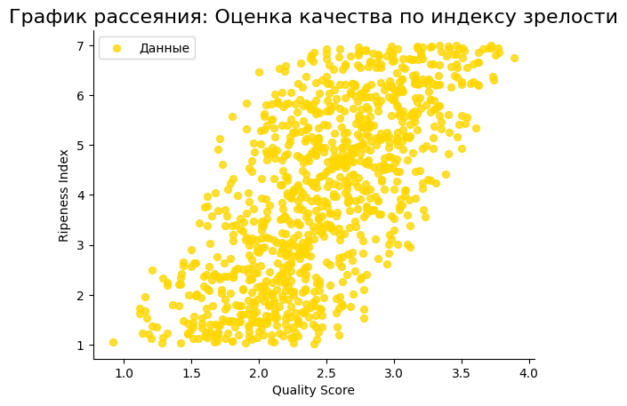 На представленном графике демонстрируется соотношение зрелости банана и оценки общего качества образца. График иллюстрирует, как уровень зрелости влияет на качество бананов, позволяя выявить оптимальные стадии зрелости для достижения наилучших оценок.