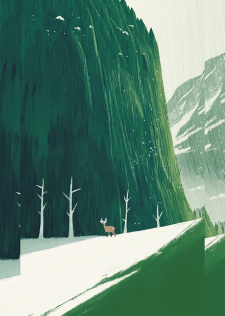Prompt: Poster for a school of Scandinavian languages. It should have landscapes of Scandinavian wildlife painted in thick paint with minimal detailing --sref https://i.postimg.cc/CK5bRqD4/6c02281973891df471e55c57e9ad8ede.jpg --sw 900 --ar 9:16