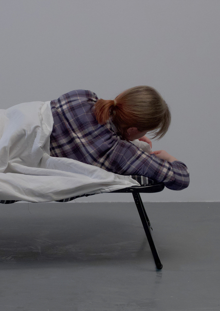 В своём перформансе я гиперболизирую и ещё раз переживаю этот опыт. Я пришиваю одеяло к кровати и нахожусь под ним до момента, когда маленькая я бы приоткрыла одеяло хоть немного, чтобы вдохнуть воздуха. Но теперь чтобы освободиться из своей пуховой ловушки мне надо ещё и разорвать нити, физически приложив усилие.