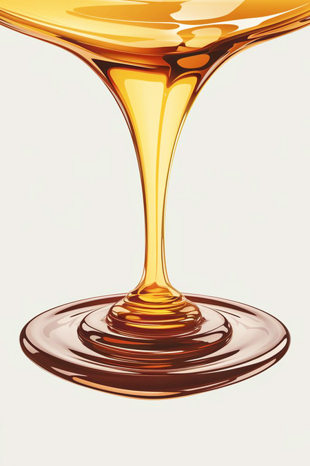 Imagine prompt: A sleek vertical poster features a pristine white background. At the center, a seamless, golden flow of honey cascades downward in a continuous, elegant curve, illustrated with precise, crisp lines. The honey radiates richness and sheen, with light reflections highlighting its opulent nature. At the top, the name 'BEAR PAW' is showcased in bold black letters, making a strong statement. Below the honey flow, the message 'From nature’s bounty to your table' is elegantly displayed.