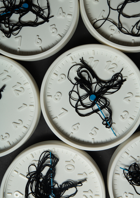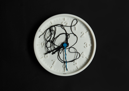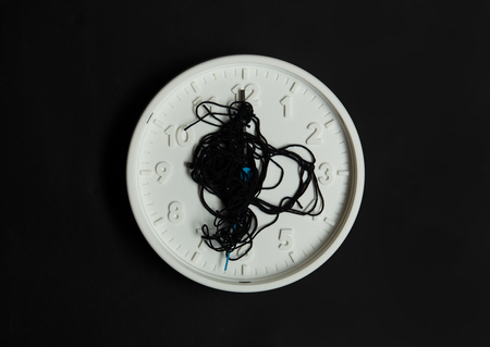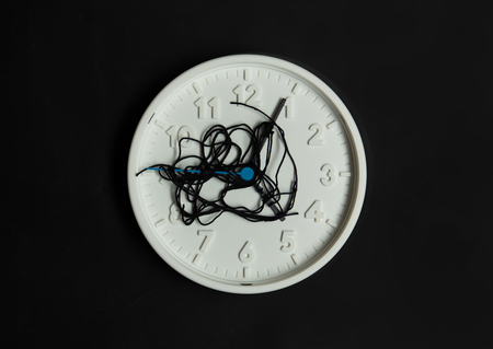 Парадигмы и их влияния на человеческое восприятие реальности. настенные часы, остановившиеся на определённом моменте, метафора застывшего времени и запутаных связей. хрупкость и эфемерность нашего существования.
