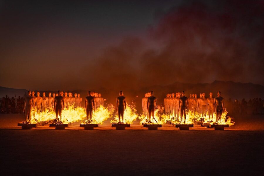 Когда Ларри описывал сожжение первой скульптуры в 1986, он сравнивал огонь со вторым солнцем. Так и есть! Когда речь заходит об огне в контексте горящей скульптуры человека, то это, как правило праздник жизни и существования в моменте.