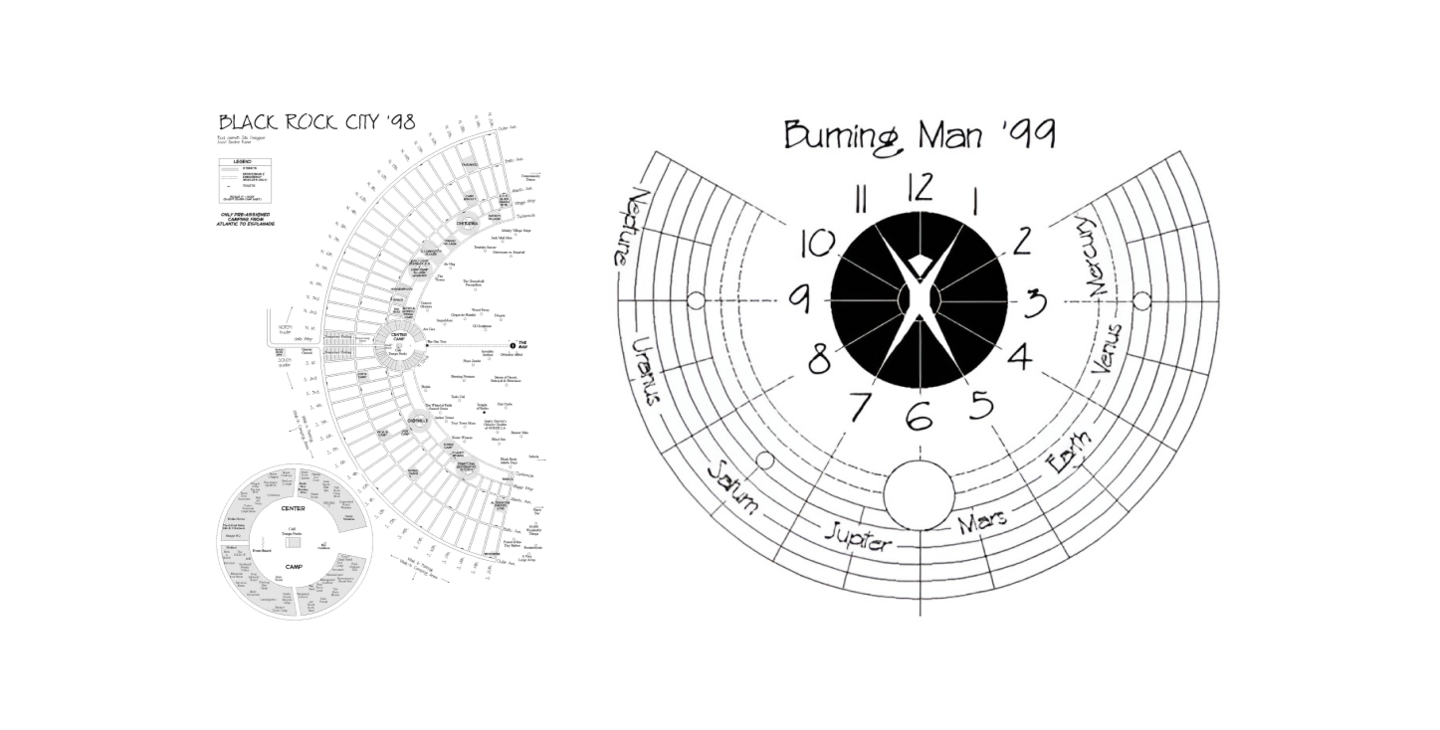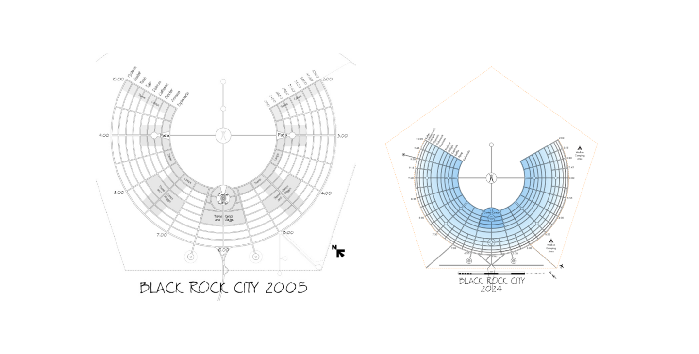 Карты Блэк-Рок Сити 1998, 1999, 2005 и 2024 по порядку. Фото с официального сайта