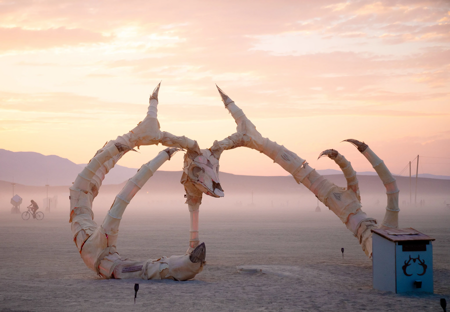 А что ещё важно знать об устройстве города-утопии? То, что этот город по-сути своей призрак. С 2019 года проект принимает участие в поддержке сохранения особой экосистемы местности. Именно поэтому сложилось основное правило: абсолютно всё то, что привозится на фестиваль, увозится с собой. Каждый раз после завершения фестиваля специальные люди обходят всю территорию мероприятия и собирают все те мелочи, которые оставили люди, чтобы пустыня навсегда оставалась пустыней.