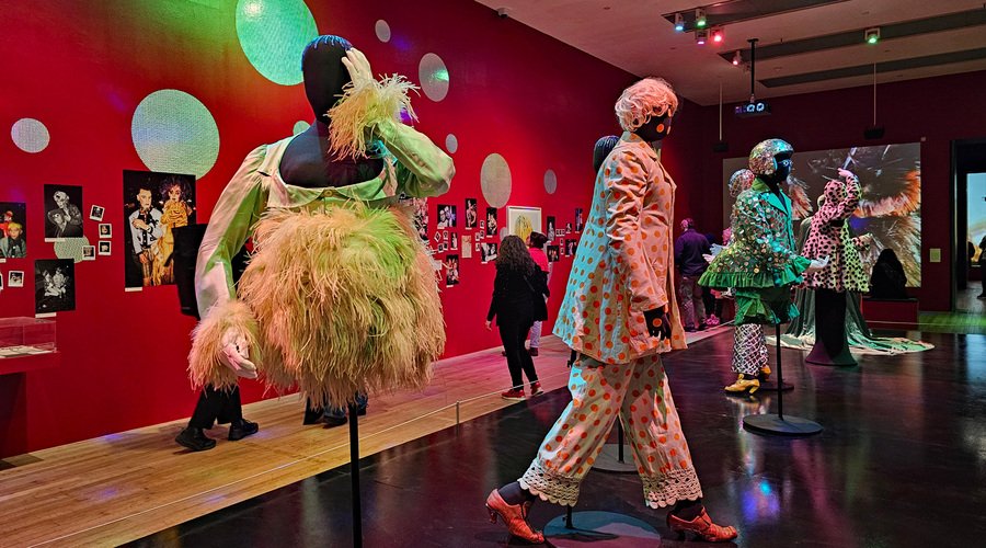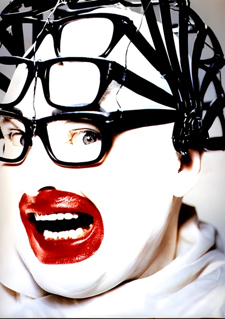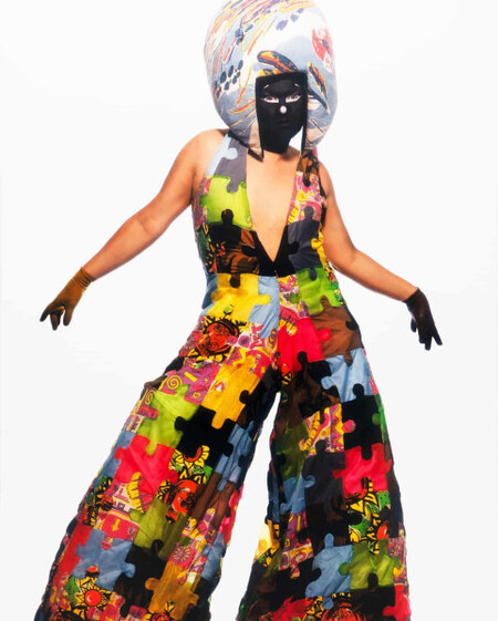 Яркие лампы вместо серег, причудливые маски, сверкающие детали, необычные головные уборы, сложные многослойные комбинации с нарушенными пропорциями, несколько пар очков одновременно, горошек, напоминающий работы Яёи Кусамы — все это превращает его костюмы в фантастические арт-объекты. Они существуют на стыке перформанса, скульптуры и телесного искусства, переосмысляя традиции дрэга и конструируя принципиально новую визуальную идентичность.