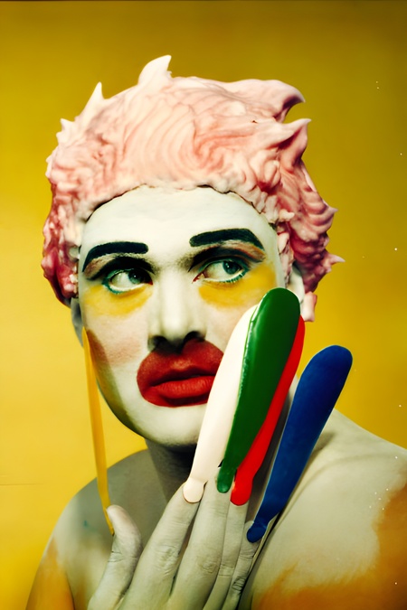 Истинная причина заключалась в самой личности Бауэри, использовавшего собственное тело как художественный медиум для самовыражения и формирования идентичности. Он относился к своей физической оболочке как ваятель — сознательно искажал пропорции, порой весьма радикально и даже с определенной долей жесткости. На полотне Фрейда заметны характерные проколы в щеках — следы от гигантских булавок, с помощью которых Бауэри растягивал рот в неизменную гримасу улыбки.