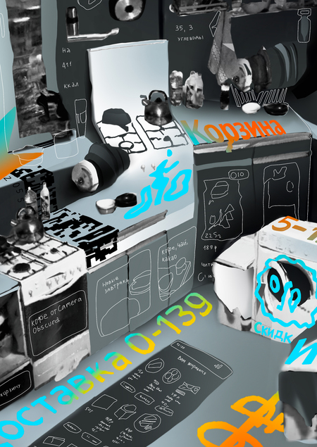 В теме Big Data мне было интересно исследовать виртуальный мир, состоящий из информации, которая утикает в сеть. В своем проекте я беру за основу несколько знакомых всем пространств и деконструирую их в связи с теми данными и теми цифровыми артефактами, которые отражают эти места в параллельном мире Big Data. Я заменяю привычные материальные структуры на цифровые, создавая тем самым новые пространства и новые взгляды на знакомые всем места.