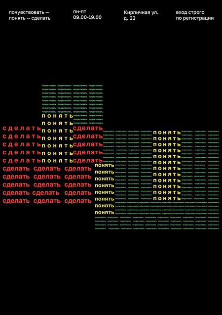 Плакаты к экскурсионной выставке «Почувствовать — понять — сделать», посвященной художнику Баухауза Иоганнесу Иттену. Каждый из плакатов содержит отсылку на определенную картину. Графические пиксельные отражают диджитал часть выставки, а типографические — ее цель.