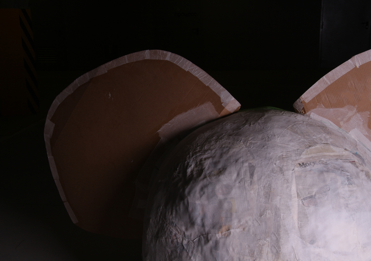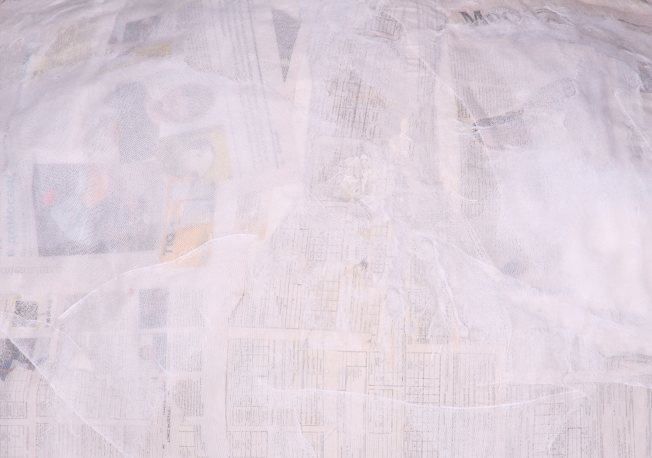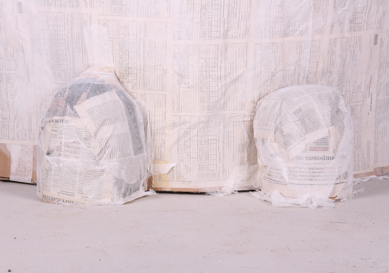 Просвечивающиеся газеты, использованные для папье-маше, отсылают на историчность проекта.