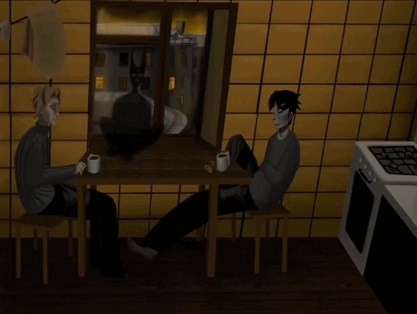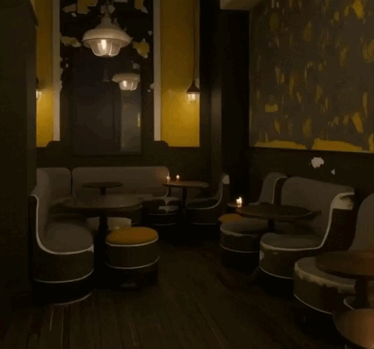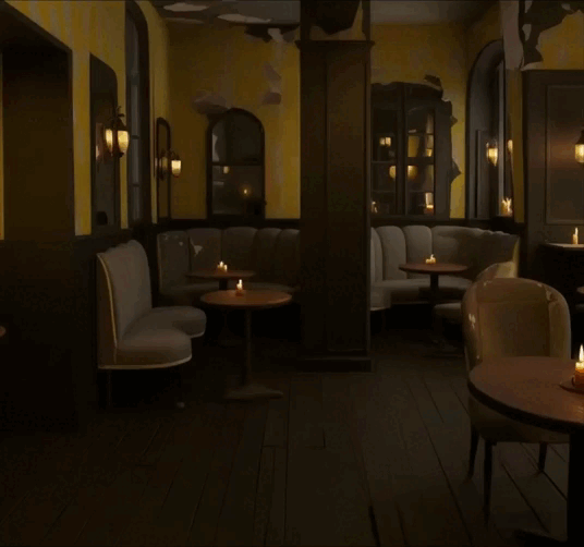 Кафе в стиле одноименной анимации «Тень». Мрачные оттенки в духе Петербурга Достоевского, атмосфера бедности и обшарпанности, рваные обои, потрескавшаяся плитка, приглушенное освещение, свечи и домашний уют — то, что отличает это кафе.