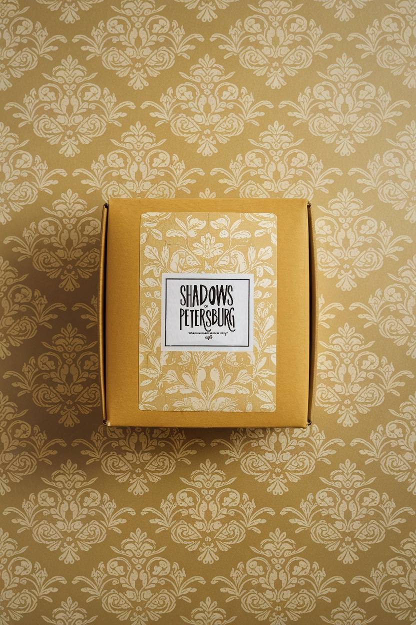Модель: Leonardo Phoenix Промпт: Create a poster for a café titled «Shadows of Petersburg». The background should be a deep black color with subtle gray shades to create a o sense of depth. Include an abstract image of light breaking through shadows, hinting at the old streets of St. Petersburg. The title «Shadows of Petersburg» should be in a mustard color with a slight texture, prominently displayed at the top. Below the title, include the slogan «Where darkness becomes cozy» in a smaller font. At the center of the poster, incorporate stylized images of candles and lamps that emit a warm glow, enhancing the inviting atmosphere of the café.
