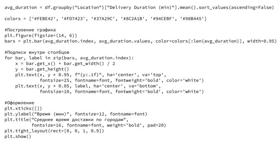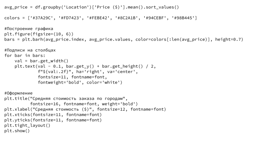 Столбчатая диаграмма. Средняя стоимость заказа по городам