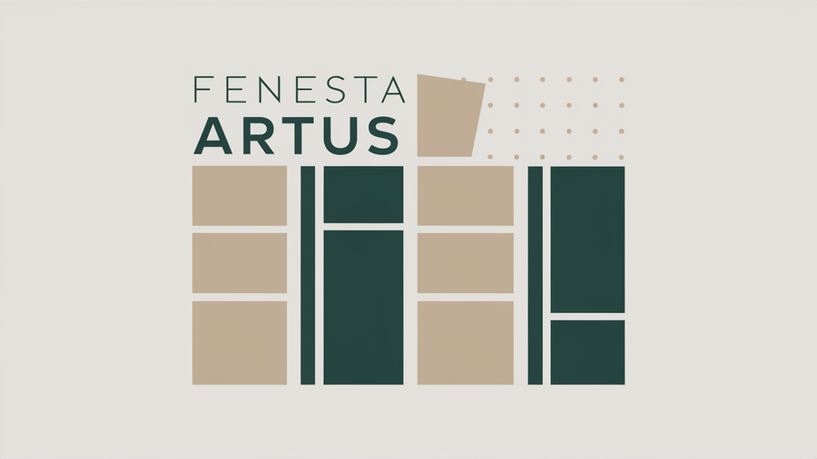 A sleek and modern minimalist logo design for the Fenesta Artus Museum. The design features the name «Fenesta Artus» in clean, modern font, with the letters in a stylish beige and dark green color scheme. Interspersed between the letters are abstract representations of windows in the same beige and green tones, symbolizing the museum’s focus on artistic windows and architectural designs. The overall design exudes sophistication and modernity, reflecting the museum’s dedication to contemporary art and architecture.