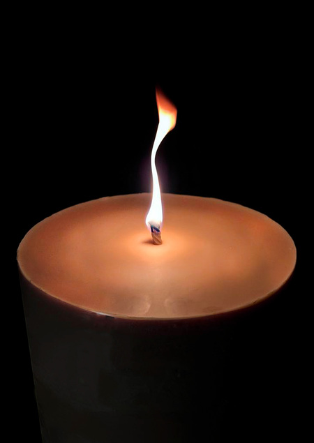 Голубая свеча (печаль) — для тихого диалога. Её длинная и тонкая форма кажется хрупкой. Мерцание огня создаёт безопасное пространство, где можно замедлиться и принять утрату, тоску или ностальгию.