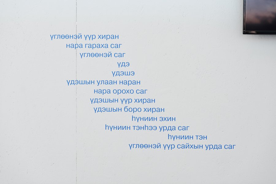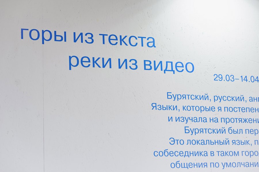 Алтана — медиа-художница из Бурятии, работающая с видео и перформансом. На выставке «Горы из текста, реки из видео» она изучает различные формы восприятия времени, пространства и памяти. Полиязычная среда, в которой существует художница, ставит текст на особое место в ее работах, что необходимо было отразить при создании образа выставки.