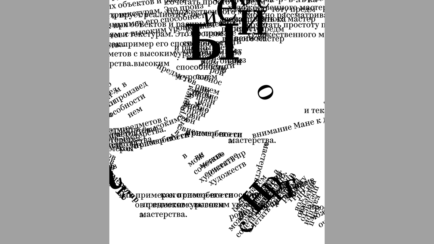 A set of typographic clausures: portrait, still life, landscape, designed in the techniques of application and digital collage. Experimental lettering. The design of newspaper pages (420×578 mm) based on the texts of the news reports of the HSE ART AND DESIGN SCHOOL.