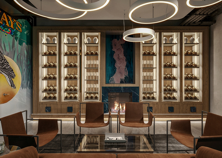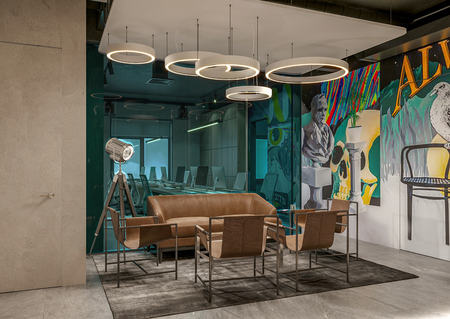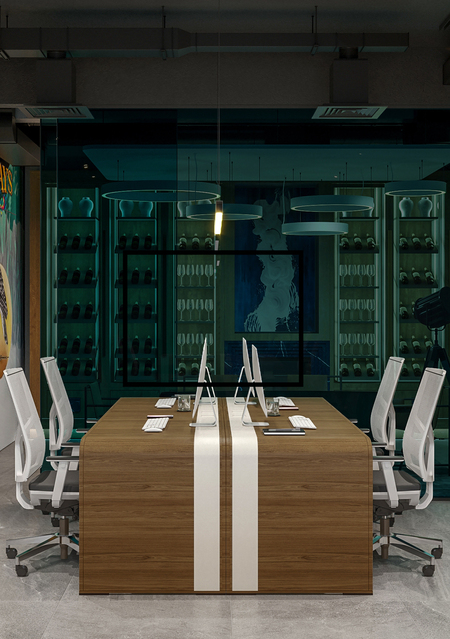 Лофт, граффити и офисная мебель индивидуального изготовления. Комната переговоров с коллекцией вина Заказчика.