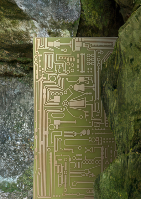 Идея заключалась в том, чтобы создать уникальный паттерн, объединяющий символику и формы древних рисунков с геометрическими узорами, типичными для современных печатных плат. Этот симбиоз символизирует встречу двух миров: мира древних традиций и мира современных технологий.