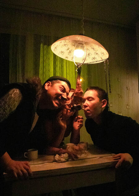 Под Желтым Небом Кальбанмух создал людей по своему образу и подобию. Сева, Родион и Маринка живут в этом гнусном мире и, чтобы искупить свои грехи, очиститься, съедают Кальбамуха.