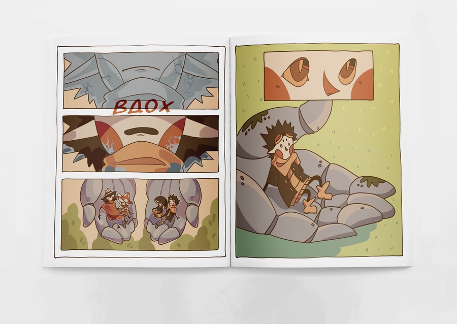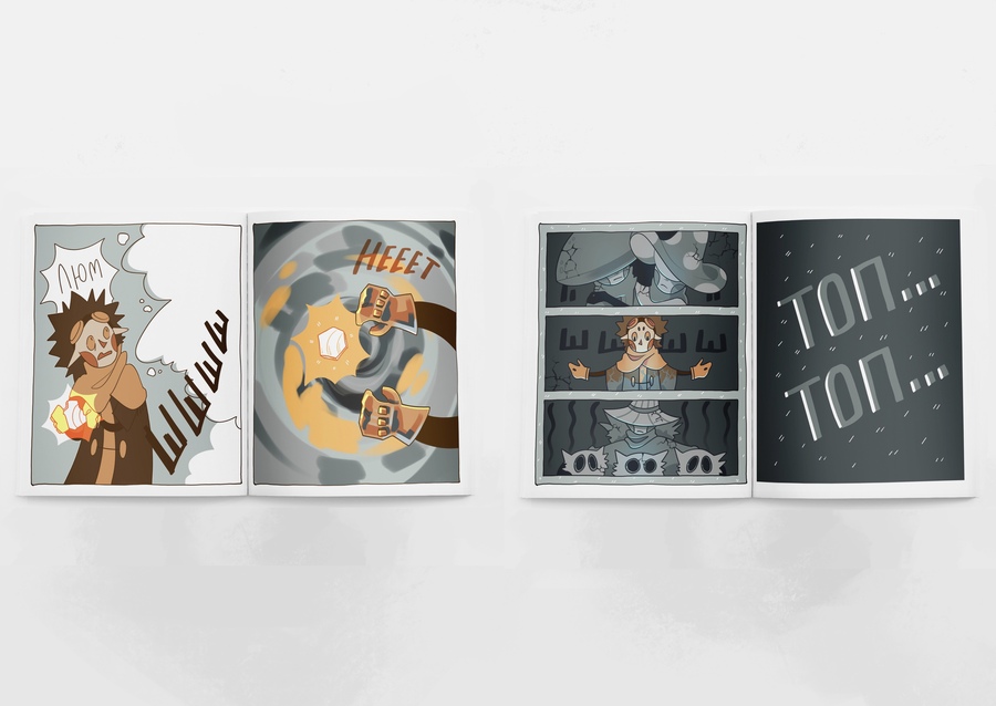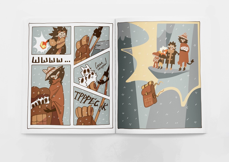 Вторая часть повествования разряжена. В ней куда меньше контрольных точек, что показывает постепенное успокоение, расслабление. Дела налаживается. Концовка комикса остаётся открытой, давая задел на продолжение приключений, подогревая интерес к последующей истории, а так же позволяя читателю самому додумать дальнейший путь героев.