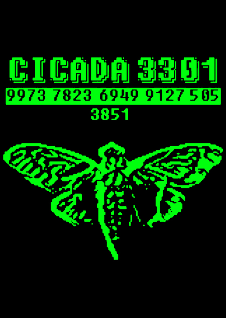 Пожалуй, самая известная ARG в истории, о которой говорили на каждом углу. По легенде, Цикада 3301 это некая организация, набирающая в свои ряды одарённых людей. Все загадки ARG связаны с защитой данных, криптографией и стеганографией. 4 января 2012 года на форуме 4chan был размещён пост: «Привет. Мы ищем лиц с высоким интеллектом. Для этого мы разработали тест. В этом изображении есть скрытое сообщение. Найдите его, и оно покажет вам, как найти нас. С нетерпением ждём тех немногих, кому удастся пройти весь путь. Удачи. 3301 "