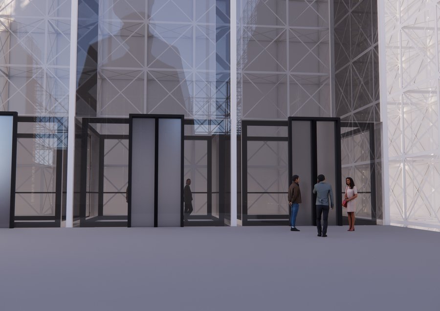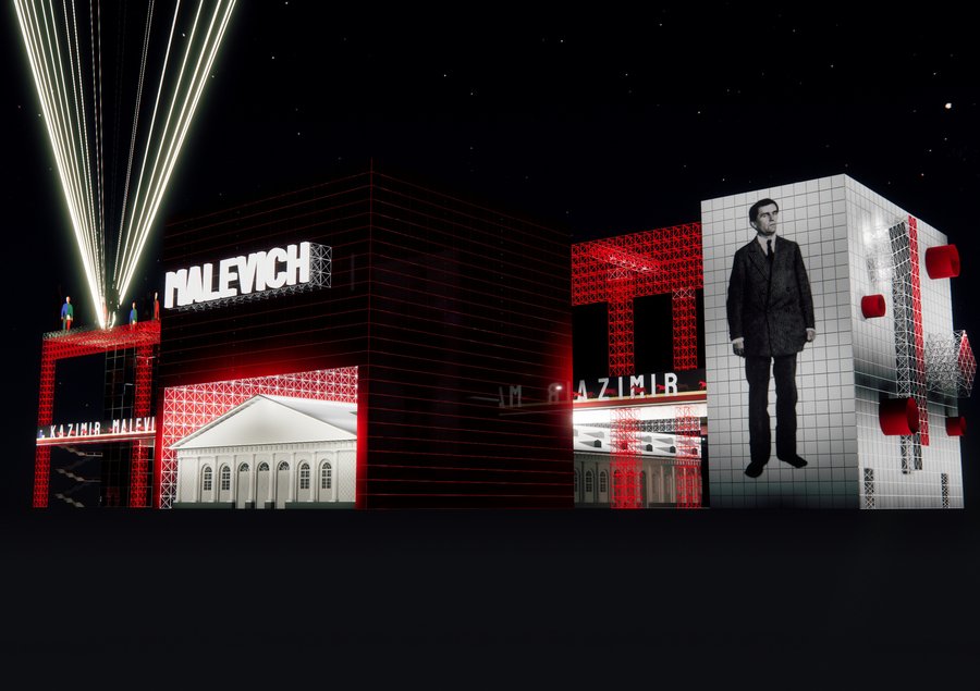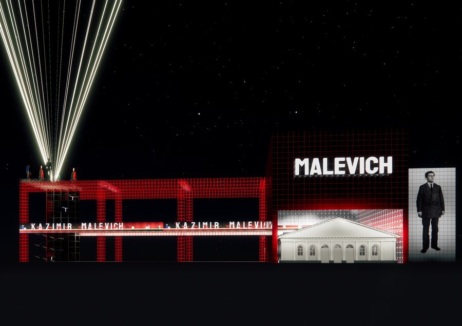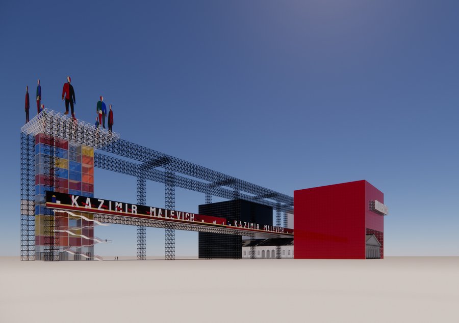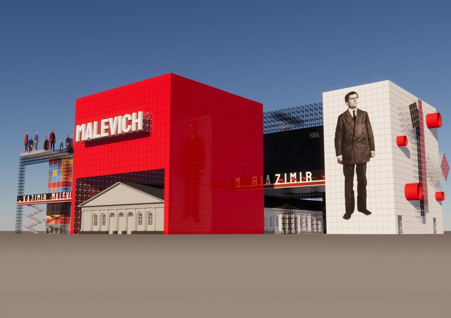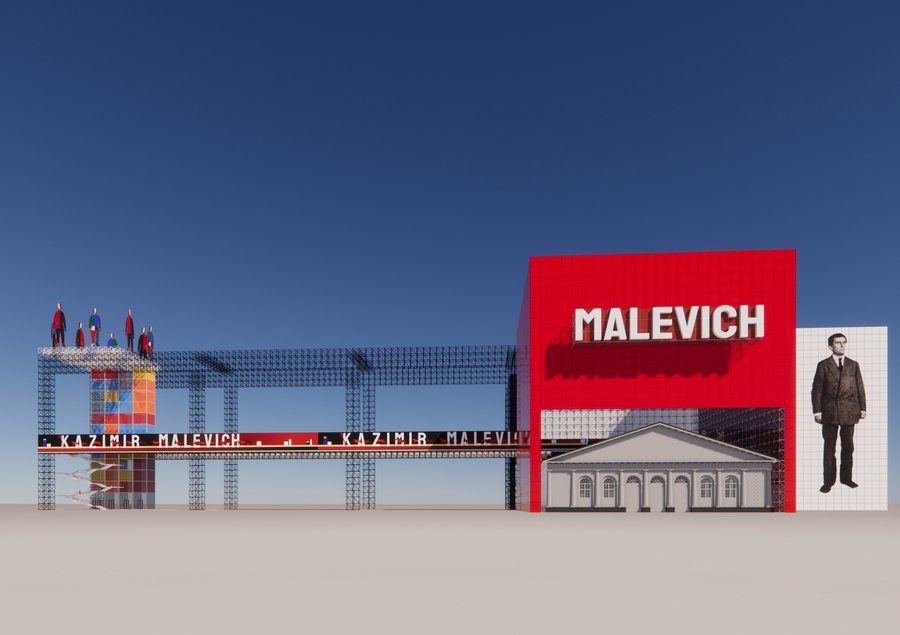 В проекте представлены временные фасады к выставке «MALEVICH в стране лилипутов», которая посвящена творчеству Казимира Малевича. Фасад выполнен в виде трех знаковых картин Казимира Малевича — «Черный квадрат», «Красный квадрат» и «Белый квадрат», создавая визуальный диалог между искусством и окружающей средой. Также в основу архитектурного фасада был интегрирован архитектон Малевича.