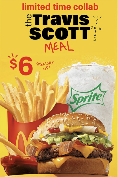 Сотрудничество McDonald’s с известным рэпером Трэвисом Скоттом (американский рэпер и основатель лейбла Cactus Jack) заметно увеличило продажи, ведь исполнитель имеет широкую фанатскую базу, особенно на Западе. Учитывая его популярность кампания опиралась на интерес определенной группы потребителей, которым такой формат рекламной кампании был особенно близок.