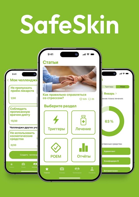 SafeSkin — это мобильное приложение для подростков с атопическим дерматитом, которое создано для того, чтобы