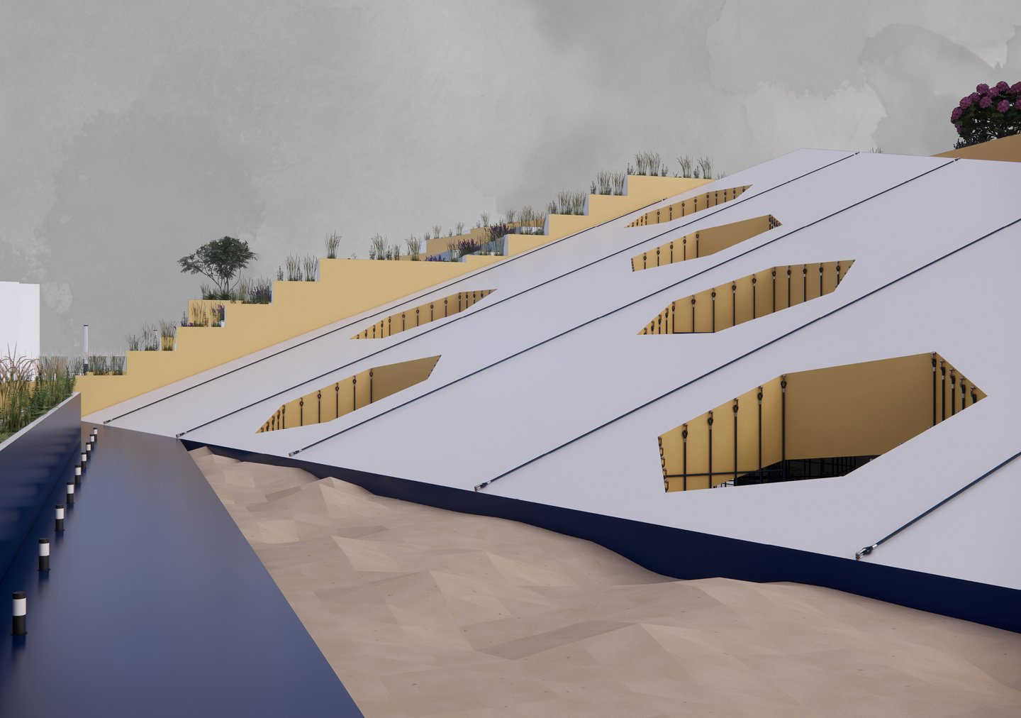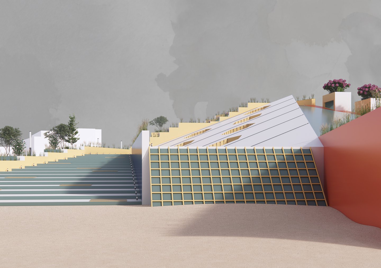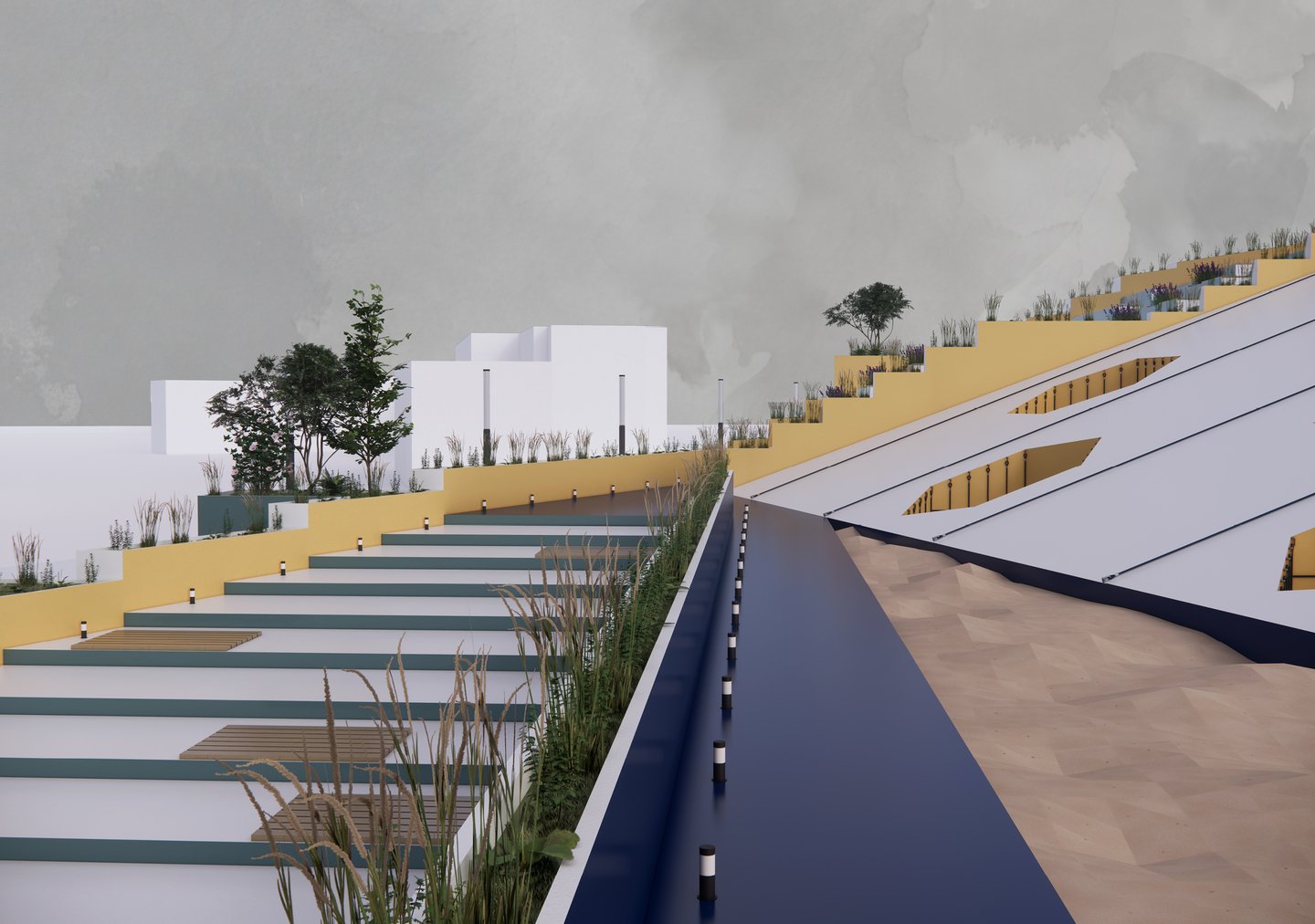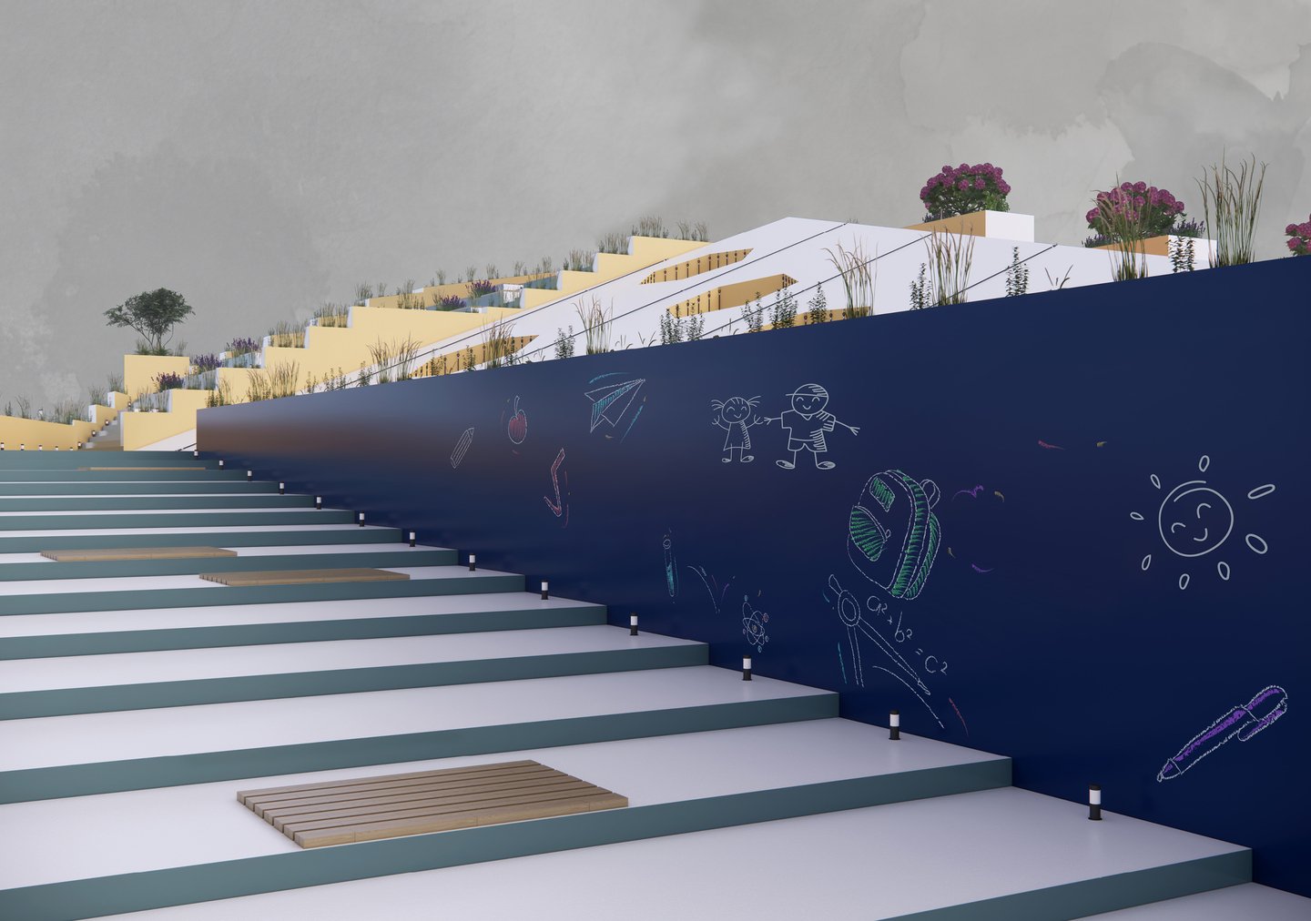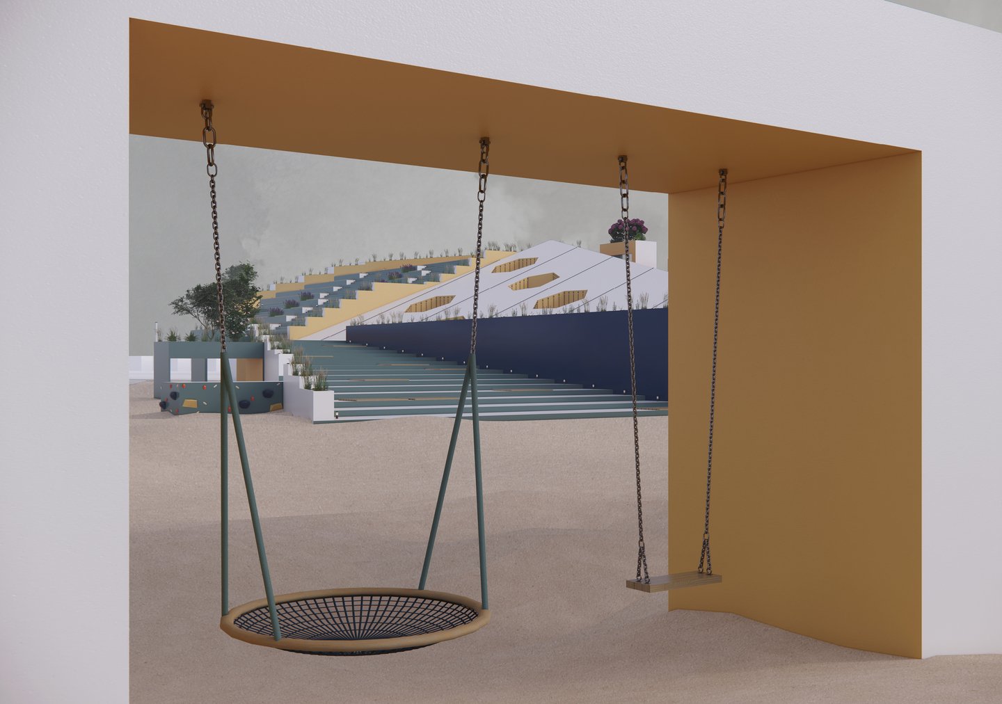 В этом модуле мы разработали проект детской площадки «Хилс". Это многоступенчатая конструкция, которая сочетает в себе множество функций. Пространство создает разнообразные сценарии взаимодействия с пространством, за счет спусков и подъемов разного типа. Это и горки, ступеньки, вертикальные лестницы, стены для скалолазания и многое другое.