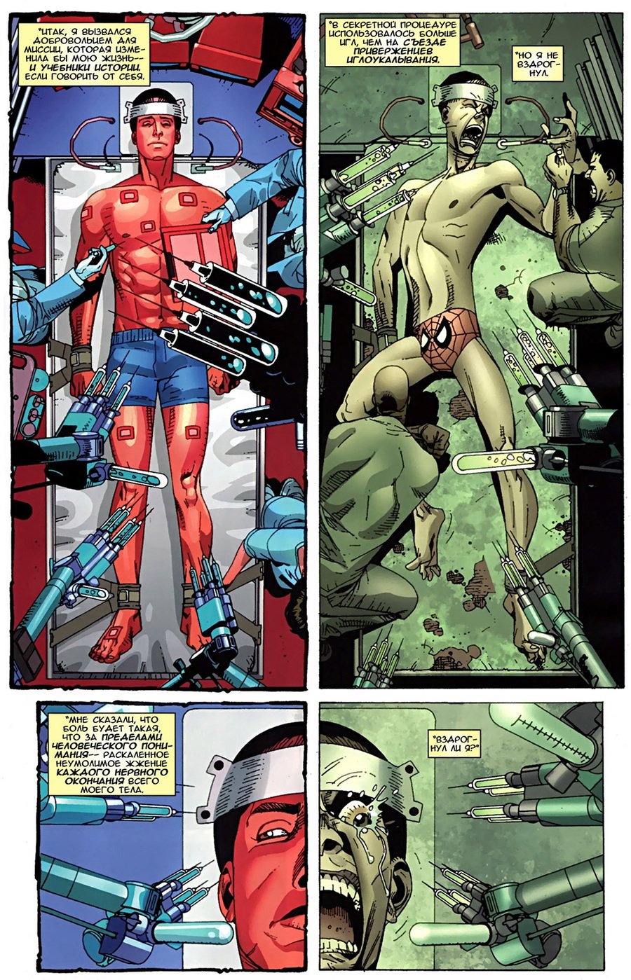 Безусловно, персонаж, который осознаёт, что он в комиксе, особенно с таким богатым арсеналом шутника, как у Дэдпула, просто не может не делать отсылки на известных личностей, таких как Майкл Джексон или Питер Паркер, например, последний из которых вообще никак не связан с ситуацией и, вообще-то, мелькает в качестве принта на нижнем белье и является неуместным, поскольку на заднем плане наёмник подвергается пыткам и находится в агонии (но я, естественно, неуместным это не считаю).