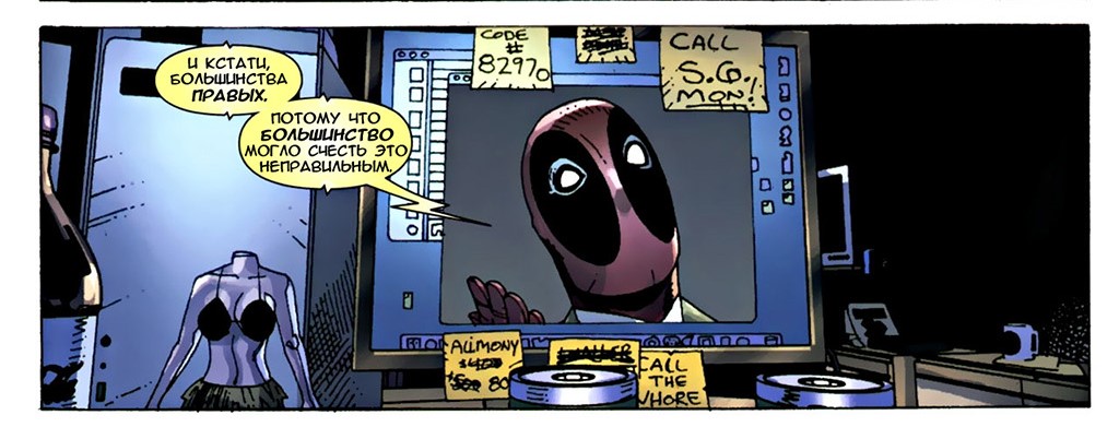 Одной из ключевых тем в этой серии комиксов является наличие у Дэдпула множественных личностей. Скорее всего, это отражает его психическое состояние и травмы, которые он пережил. Внутренний голос, который часто комментирует события или подшучивает над ним, может быть интерпретирован как проявление его психоза. Можно сказать, что голос становится своего рода защитным механизмом, позволяющим ему справляться с реальностью и своей внутренней болью.