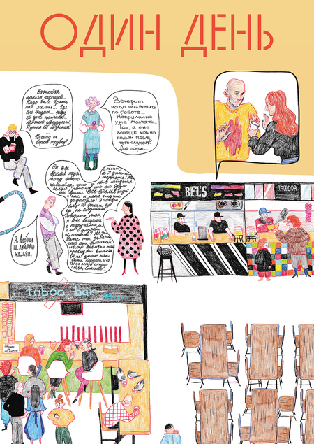 Почему же «один день»? Потому что это история про день из жизни каждого человека, который причастен к этому месту. И в то же время про день из жизни самого места, наблюдающего за каждым человеком.