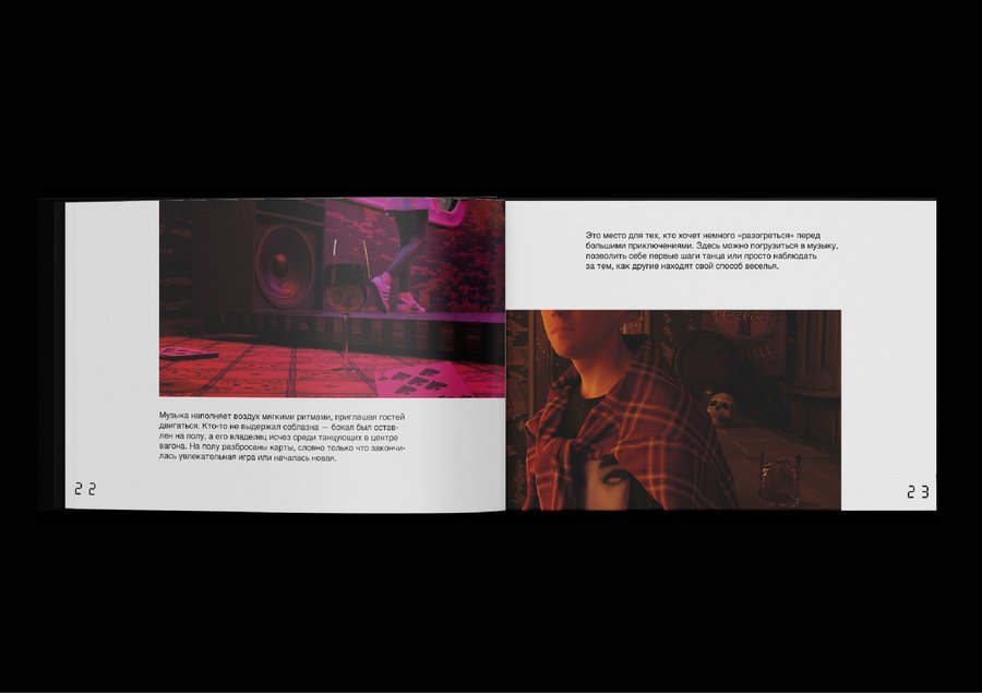 Бар в заброшенном поезде — интерактивное пространство из шести вагонов, где каждый вагон символизирует новый уровень опьянения, от трезвости до полного растворения в моменте. Заброшенный поезд становится местом для путешествия через эмоции, музыку и восприятие реальности.