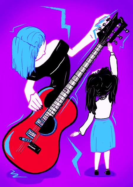 Перед выходом на сцену юной гитаристке рок-группы вспоминается неудачный опыт выступлений, из-за которого она нервничает.