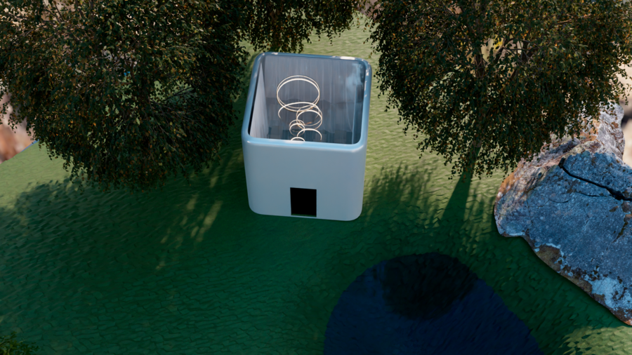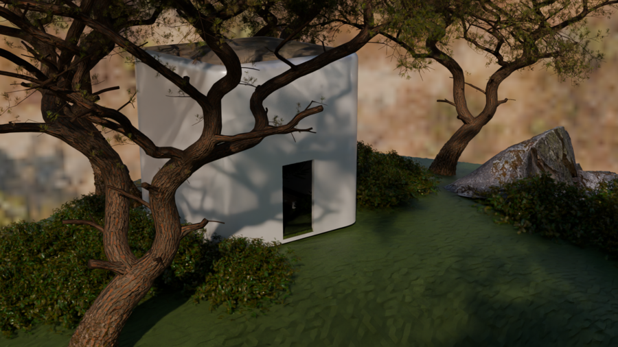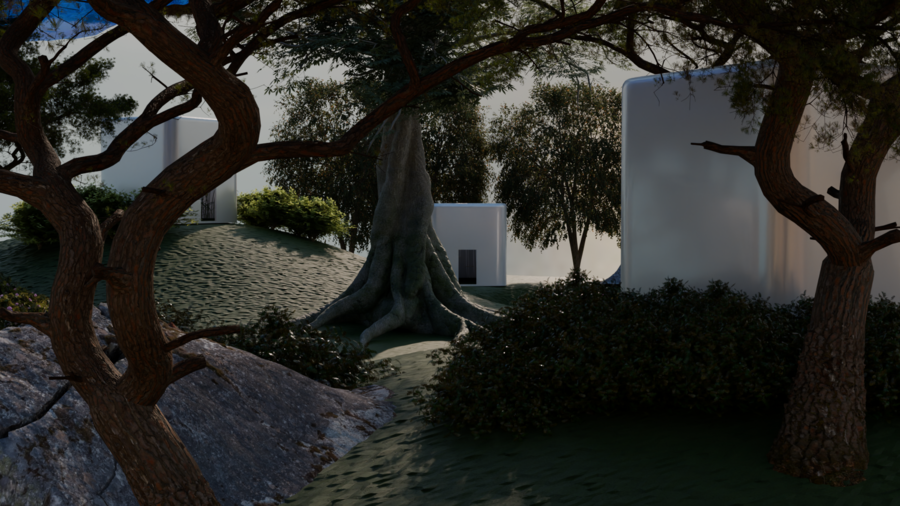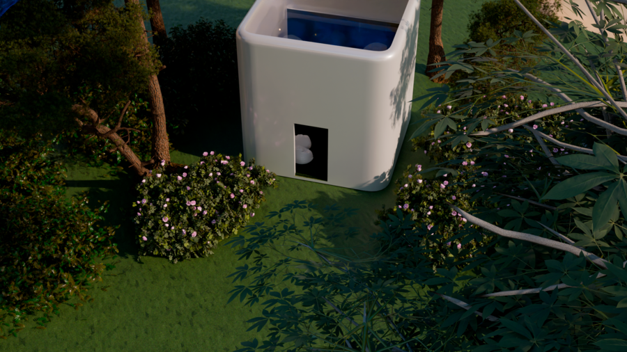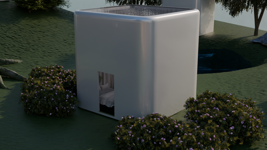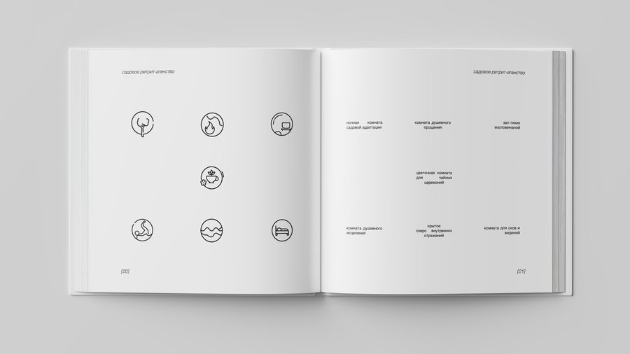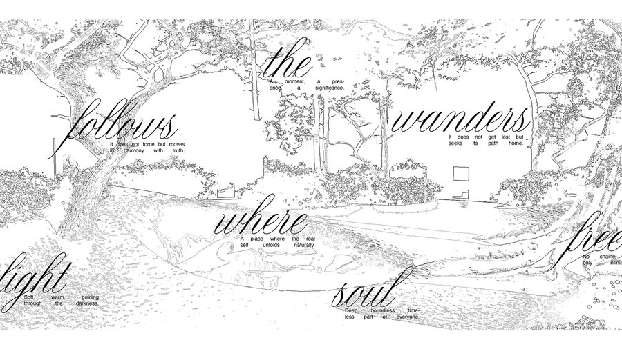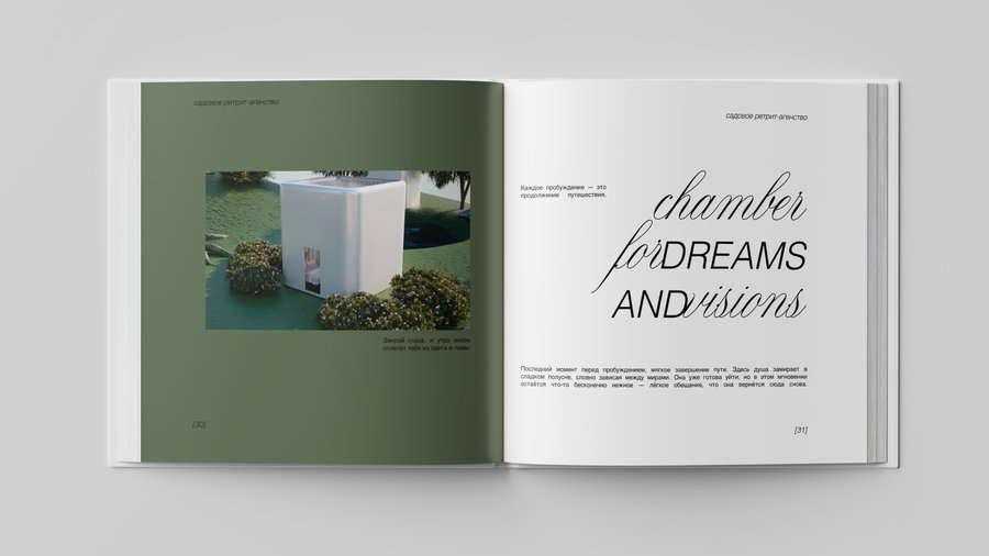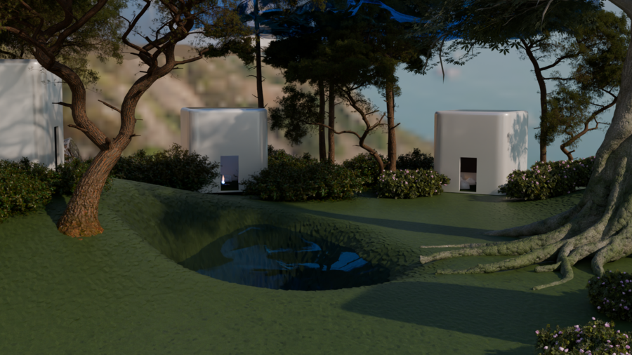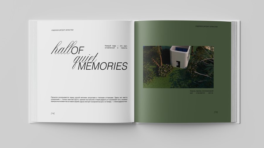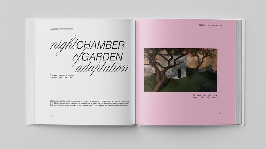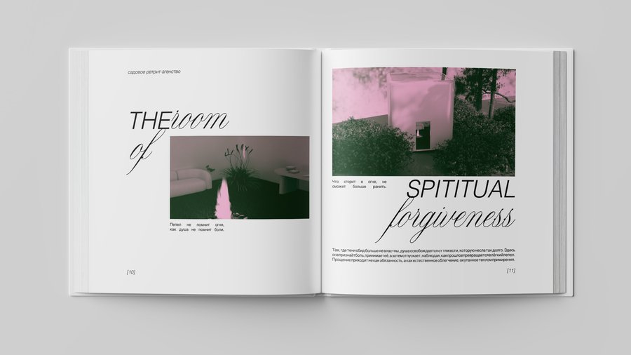 Белые кубы-комнаты, растворённые в саду, становятся проводниками во внутренний мир души: здесь душа адаптируется, прощает, вспоминает, осознаёт, исцеляется, очищается и возвращается к покою. Это место, где время замирает, а природа бережно ведёт к восстановлению.
