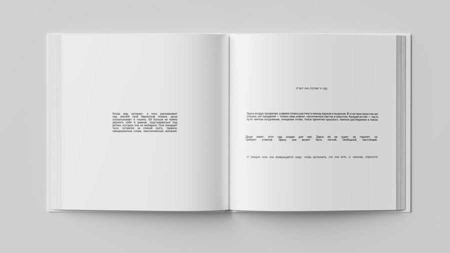 Книга о Soulgarden — это его отражение в тексте и визуальном языке. Развороты следуют пути души: от первых шагов в пространстве до полного растворения в его тишине.