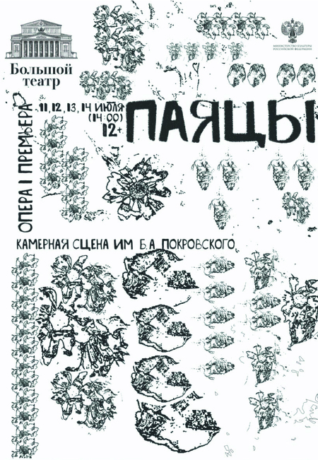 Задача: сделать плакаты для Большого театра. Опера «Паяцы» и Балет «Буря». Я использовала такие приемы как: трассировка и паттерн.